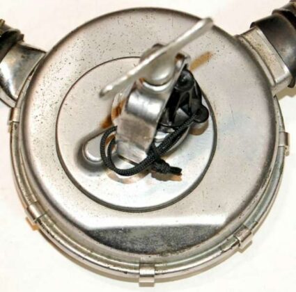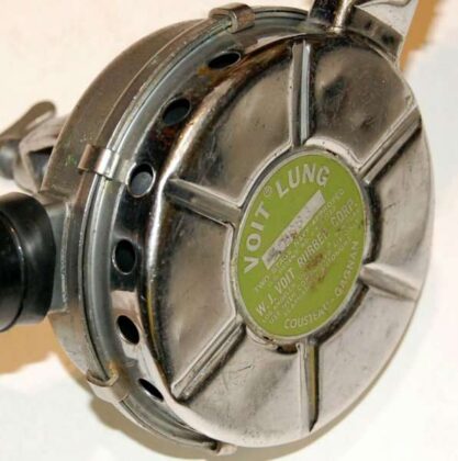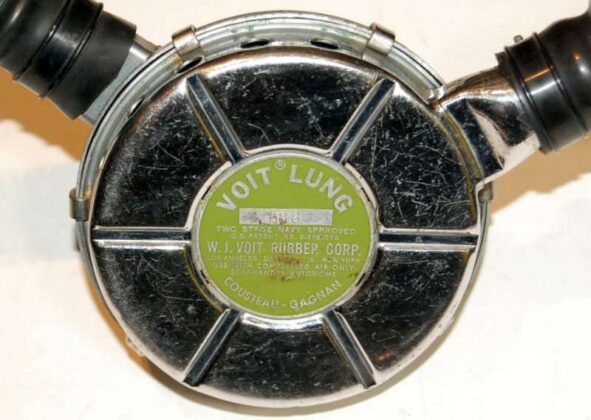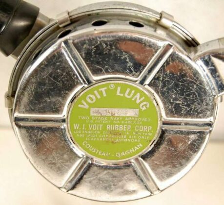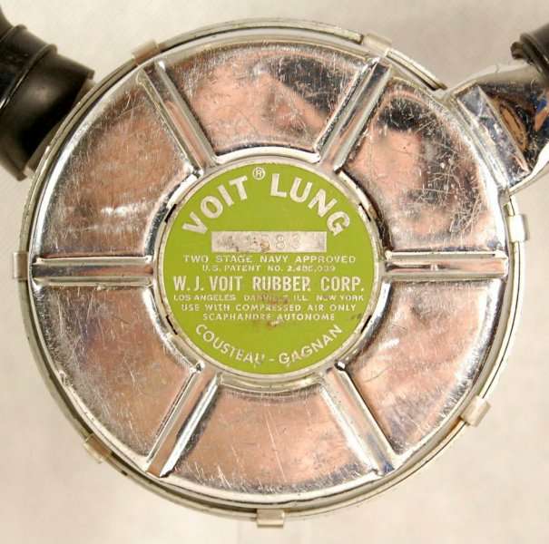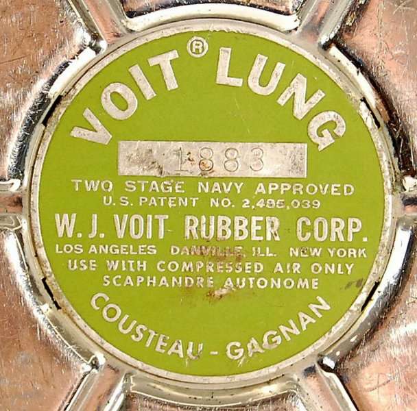 O VOIT LUNG VR-2 apresentava o label/rótulo em verde contendo as inscrições VOIT LUNG TWO STAGE NAVY APPROVED – U.S PATENT 2.485.039 – W.J. VOIT RUBBER CORP. – LOS ANGELES – DANVILLE, ILL – NEW YORK – USE WITH COMPRESSED AIR ONLY – SACAPHANDRE AUTONOME – COUSTEAU GAGNAN. O numero da patente foi colocado no rótulo por exigência da U.S. Divers.