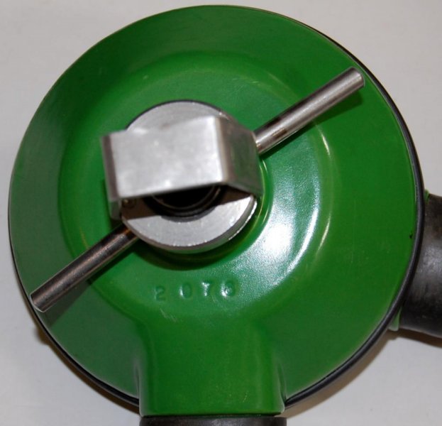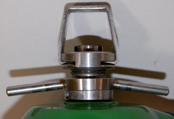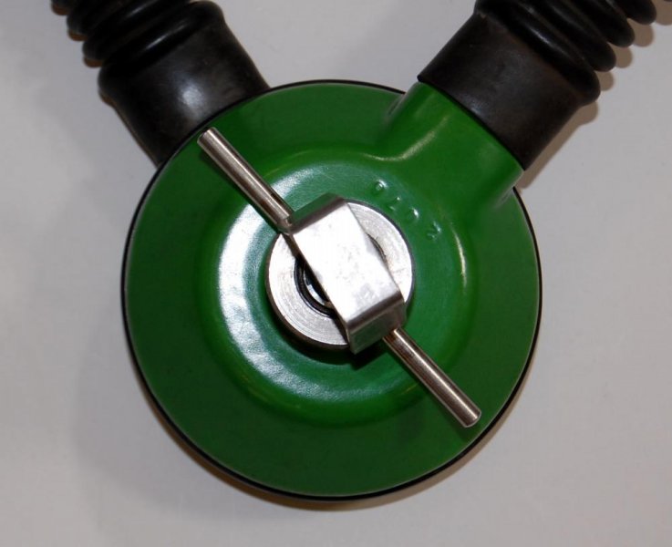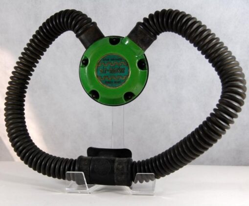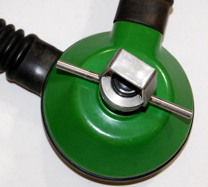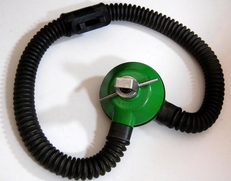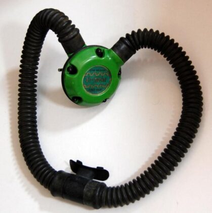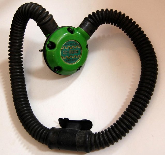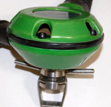 The regulator was produced in various colors and versions of 5 and 6 screws set for fixating the top and bottom parts. It is a upstream single stage double hose regulator.