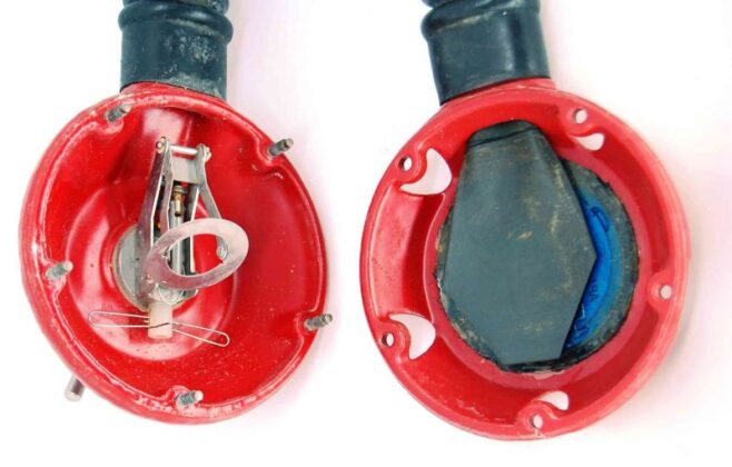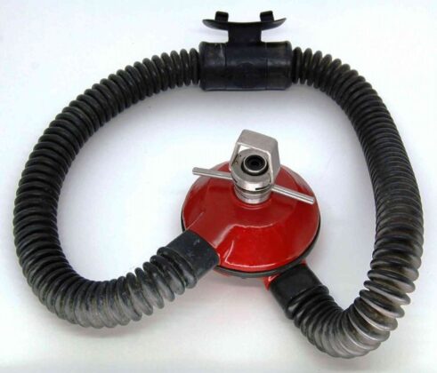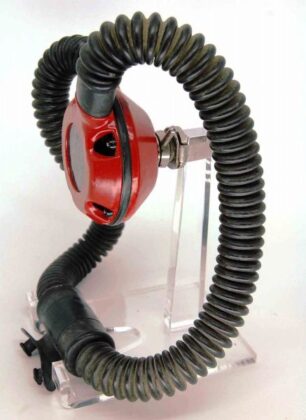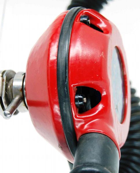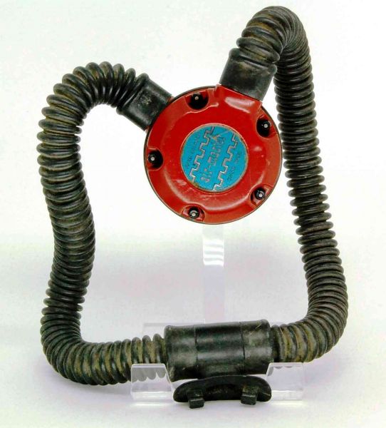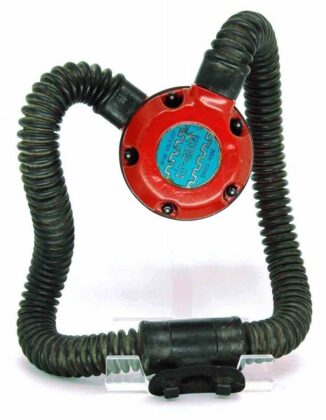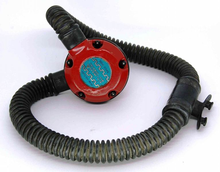 The regulator was produced in various colors and versions of 5 and 6 screws set for fixating the top and bottom parts. It is a upstream single stage double hose regulator.