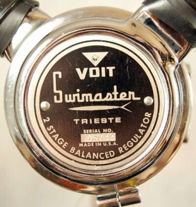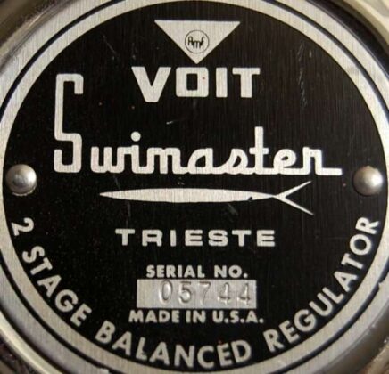 O label/rótulo era na cor preta e tinha a inscrição VOIT – SWIMASTER – TRIESTE – 2 STAGE BALANCED REGULATOR – MADE IN USA. Existia também o espaço para o número de série.