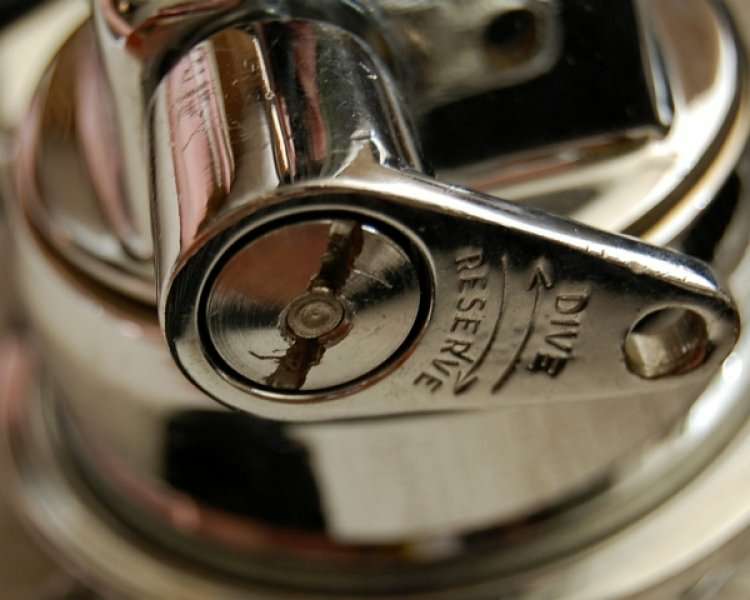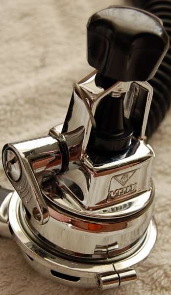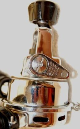 O yoke e o botão/parafuso de aperto do regulador no cilindro eram cromados.