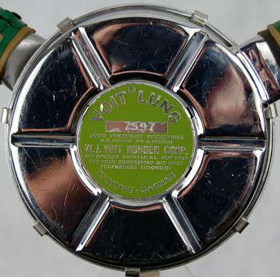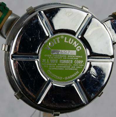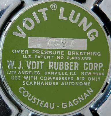 O VOIT LUNG VR-1 apresentava o label/rótulo em verde, contendo as inscrições VOIT LUNG OVER PRESSURE BREATHER – W.J. VOIT RUBBER CORP., além das três localidades – LOS ANGELES – DANVILLE, ILL – NEW YORK – o número da patente nos EUA U.S. PATENT No 2.485.039, e a expressão USE WITH COMPRESSED AIR ONLY – SCAPHANDRE AUTONOME – COUSTEAU-GAGNAN (conforme previsto no acordo com a US Divers). No label, também, aparecia o número de série com quatro dígitos.