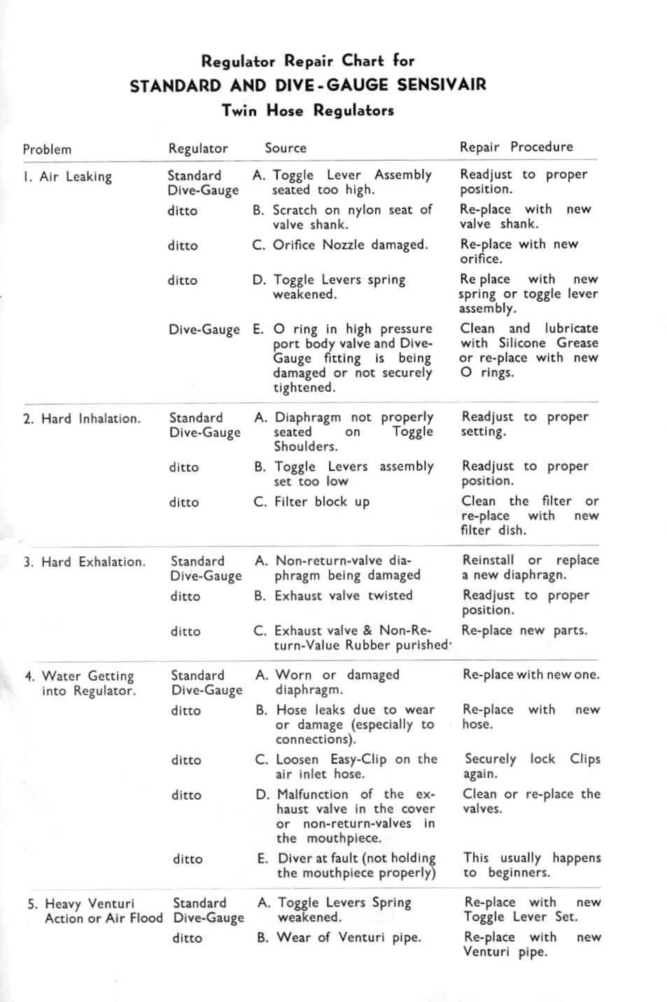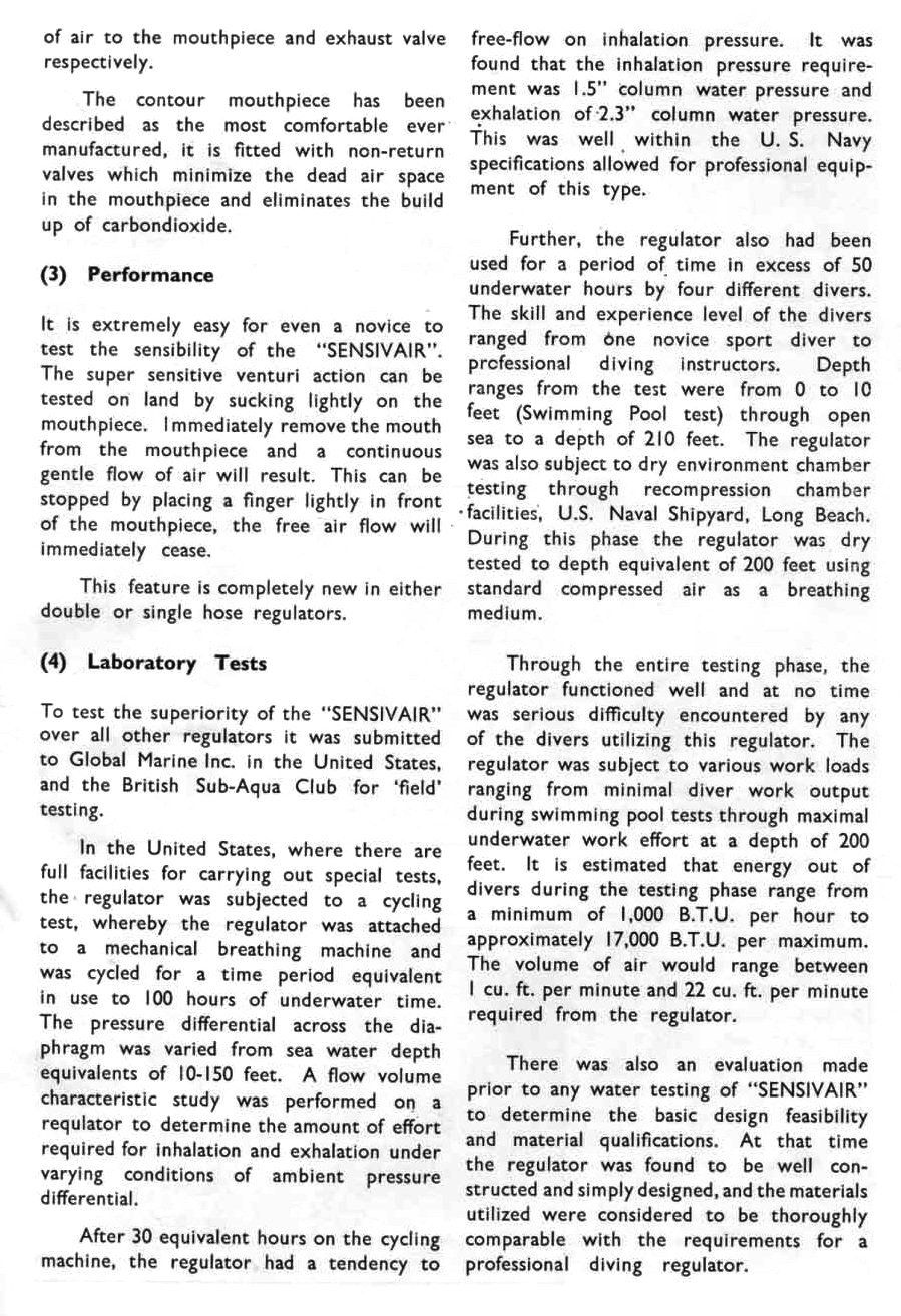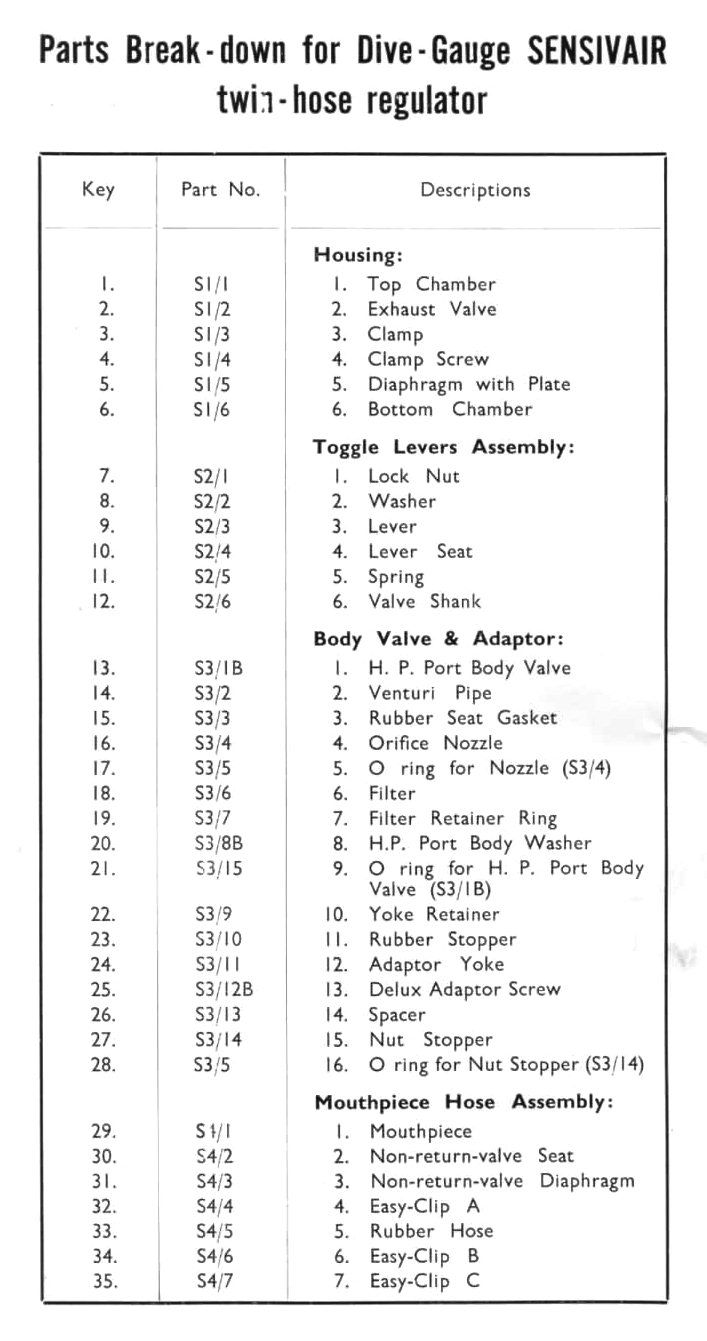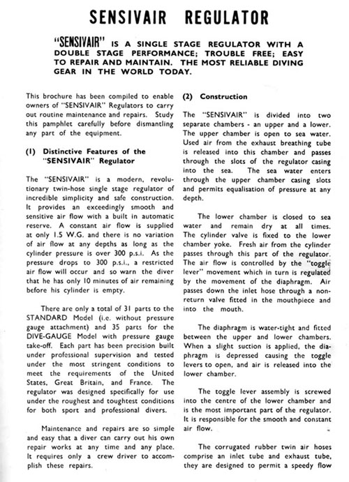 - Sensivair Catalog (Thanks to Ivan Millington and Grant Bradly – Terrigal Underwater Group).