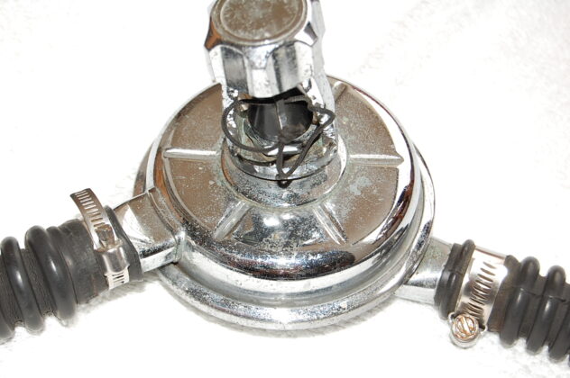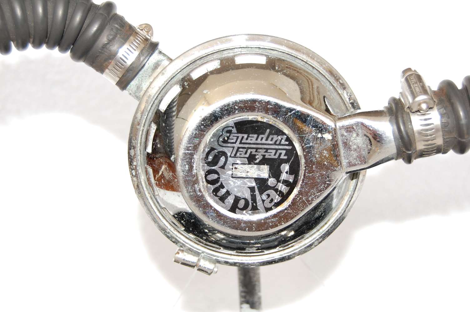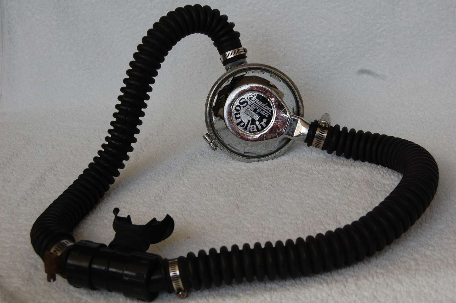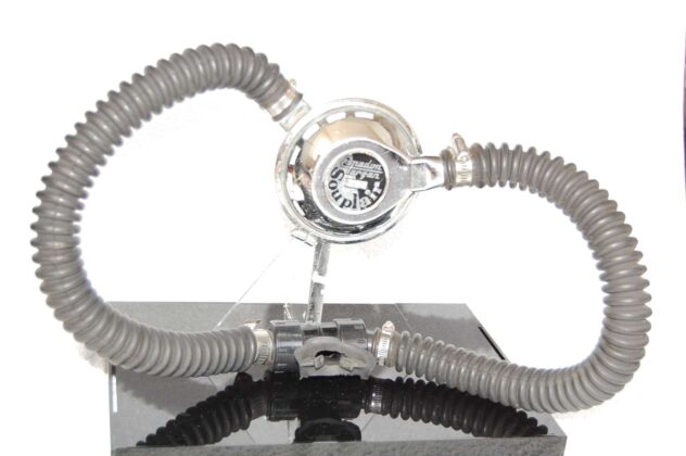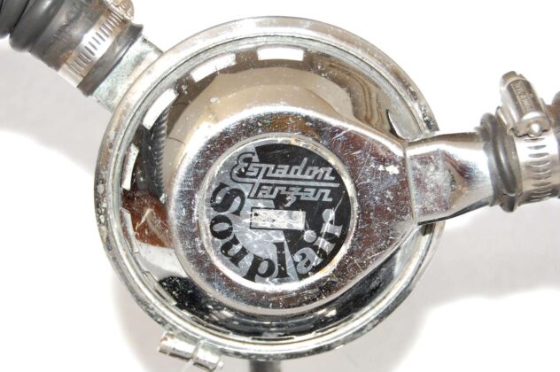 The hoses were thinner and of lower quality, and the mouthpiece was made of hard plastic. There were 2 generations and 2 versions of Souplair regulator. The 1st generation looked like a Mistral.