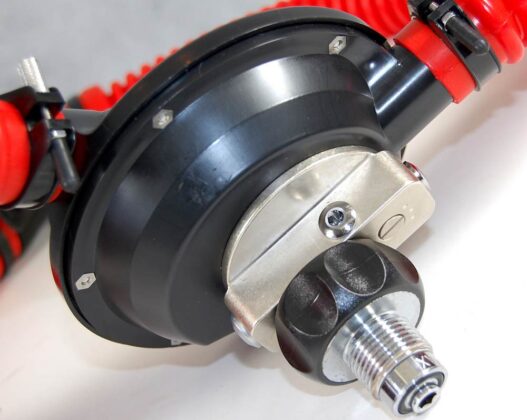 - 1st stage also contains a high pressure port allowing the diver to use either a stand-alone submersible pressure gauge, or a transmitter unit. The port is again, the current industry standard 7/16” UNF size.